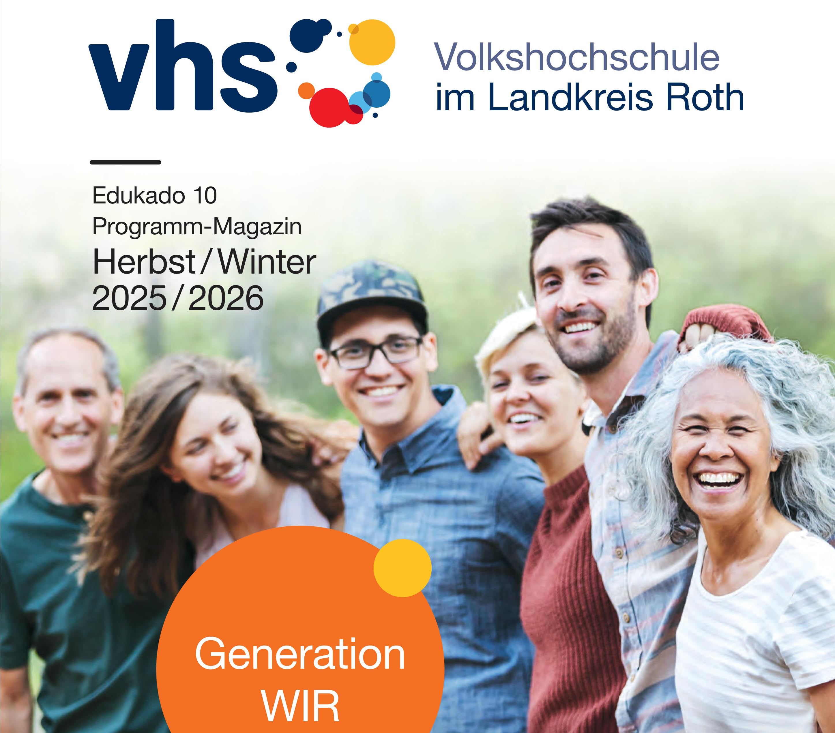 Das gedruckte Prorammheft war gestern! Edukado, das Magazin Ihrer vhs im Landkreis Roth, ist heute und liegt an den üblichen Orten aus. Mitnehmen, blättern und Anregungen holen! Das Magazin bietet mehr als nur eine Aufzählung aller Kurse – hier erfahren Sie, was es Neues gibt, woran die vhs im Landkreis Roth arbeitet und wer wir sind- vhs Magazin Edukado (Herbst/Winter 2025/2026)